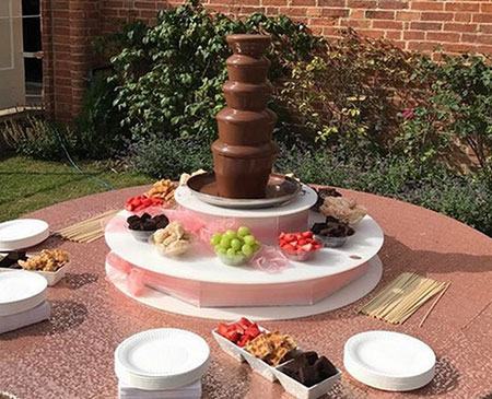 | Type of Fountain | DIY Chocolate Fountain (100 servings): £175.00, DIY Chocolate Fountain + LED Base (100 servings): £225.00, DIY Chocolate Fountain (150 servings): £205.00, DIY Chocolate Fountain + LED Base (150 servings): £255.00, DIY Chocolate Fountain (200 servings): £235.00, DIY Chocolate Fountain + LED Base (200 servings): £285.00 |